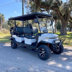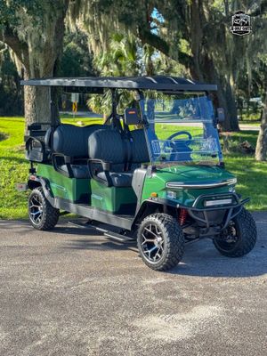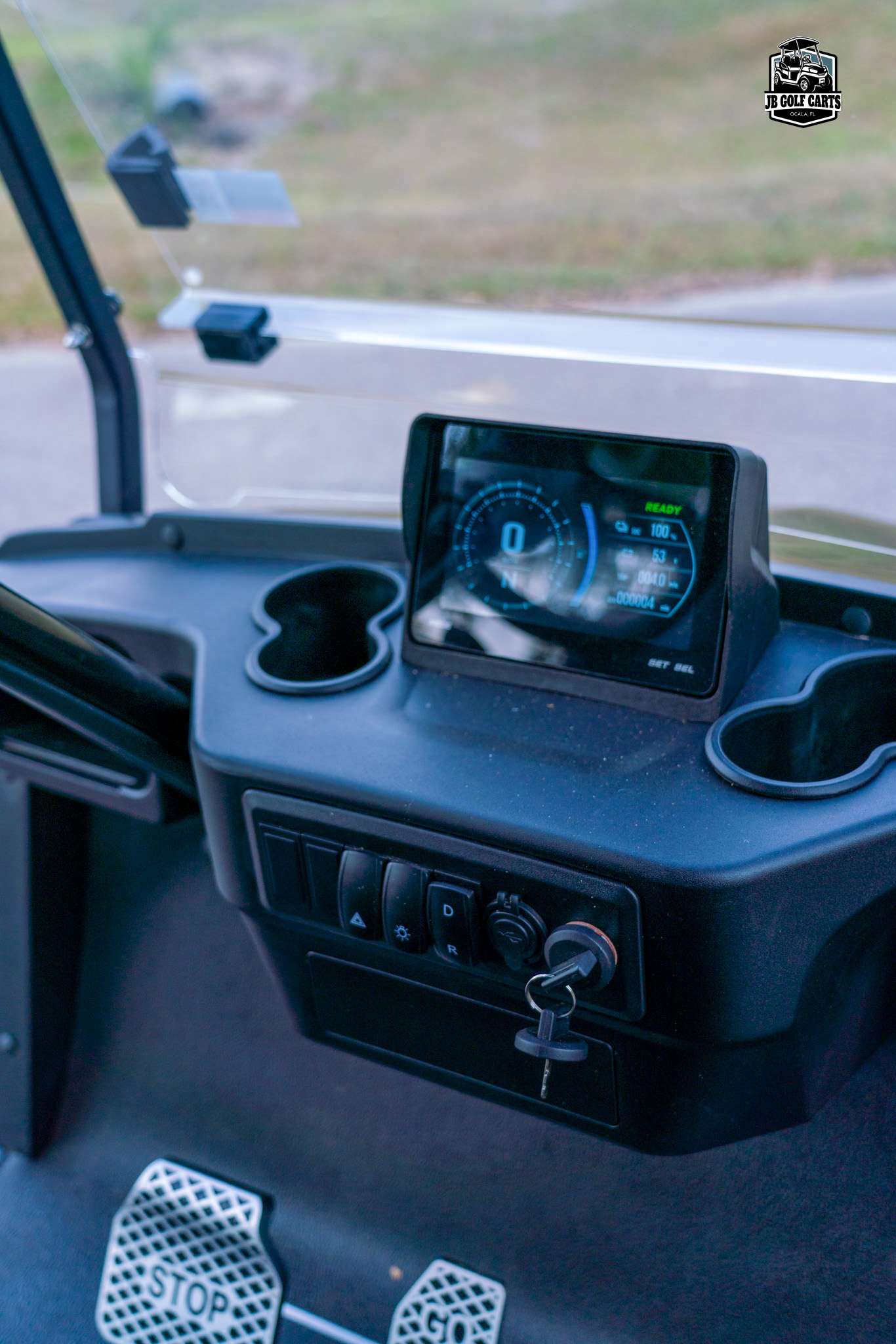 Steel frame or upgrade to aluminum (pending availability), four wheel disc/electromagnetic brakes, 400amp controller, 5kW AC motor, on-board quick lithium charger, 5” lift with 14x10x23” rims and off-road tires.