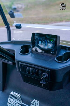 Digital dash with charge indicator, digital speedometer, side and rearview mirrors, back-up camera, bucket seats, custom steering wheel, extended roof systems, fold down windshield. Speed 25-28mph.