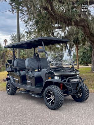✔️ Specifications:Powder coated aluminum frame, four wheel hydraulic disk brakes, 400amp controller, 5kW AC motor, on-board quick lithium charger, 2.5” lift with 14x10x23” rims and off-road tires.