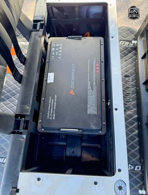 ✔️ Specifications:Powder coated aluminum frame, four wheel hydraulic disk brakes, 400amp controller, 5kW AC motor, on-board quick lithium charger, 2.5” lift with 14x10x23” rims and off-road tires.