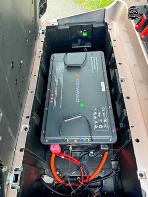 ✔️ Specifications:Powder coated aluminum frame, four wheel hydraulic disk brakes, 400amp controller, 5kW AC motor, on-board quick lithium charger, 2.5” lift with 14x10x23” rims and off-road tires.